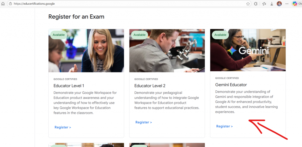 Bước 3: Tại mục Gemini Educator Certification → bấm Register.