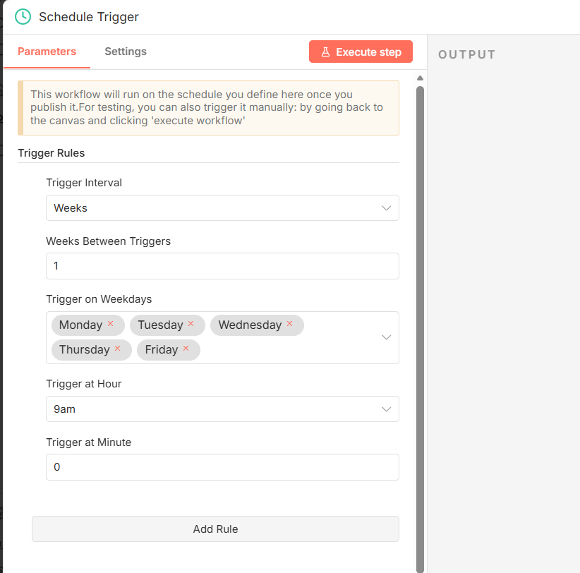 Bước 1: Node “Schedule Trigger”