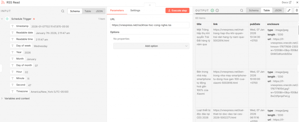 Bước 2: Node “RSS Read”